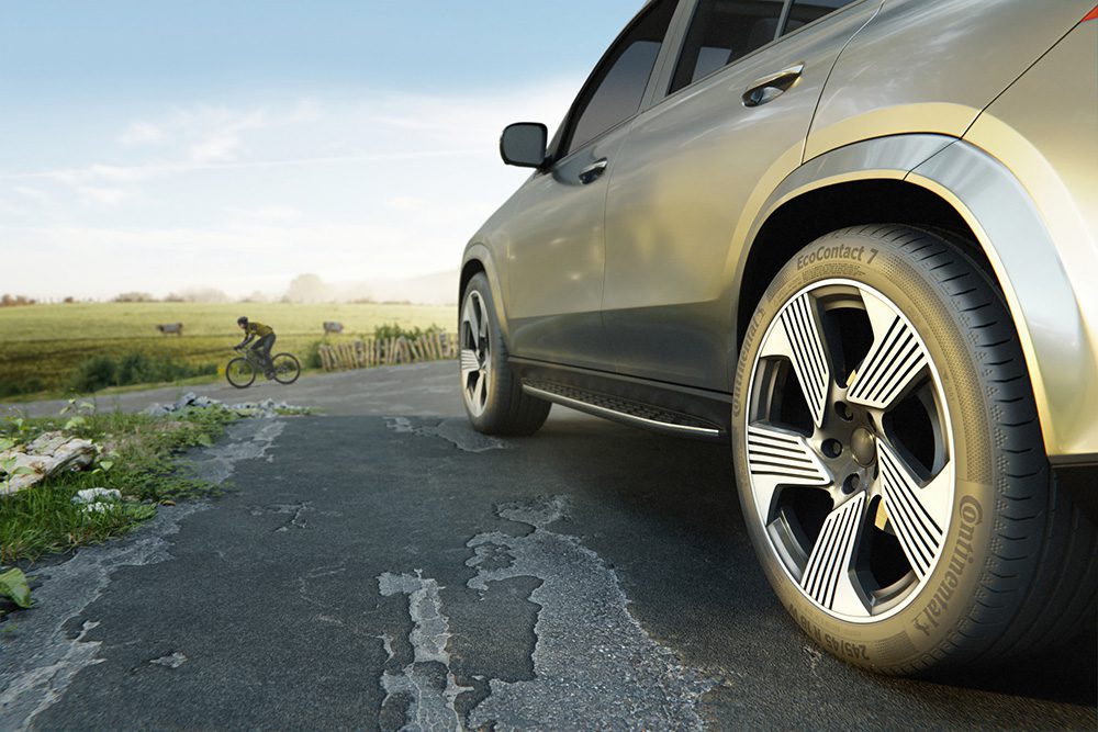 The EcoContact 7 summer tyre features a special rubber compound and the Smart Energy Casing technology to ensure high energy efficiency. New materials used in the tyre carcass, inner layer and sidewall reduce friction inside the tyre and thus lower rolling resistance. In addition, the sidewall’s aerodynamically optimised design further improves efficiency. To achieve this, Continental combines various technologies, including the golf-inspired “aerodimple” structure. The small dimples in the tyre sidewall reduce air turbulence behind the tyre, meaning the vehicle uses less energy.