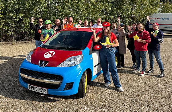 After a company vote, the chosen theme was Mario Kart! The car was transformed into a Mario Kart, and Kelsie and Tara are tackling the Alps dressed as Mario and Luigi! The car looks fantastic and they are even equipped with various Mario Kart items including bananas, mushrooms, shells and stars!