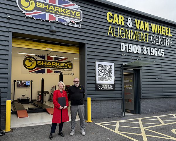 • Jo White MP visits new SharkEye wheel alignment service centre in Worksop.